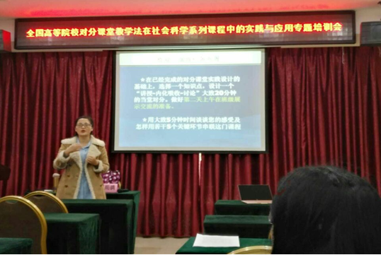 本次培训会是由复旦大学张学新教授对分课堂团队中的两个实践优秀者——陕西师范大学心理学教授王雨晴博士和平顶山学院思政课教授朱品文博士,系统讲授对分课堂的理论基础、三段五个环节的设计和隔堂、当堂、混合的三种对分模式以及“对分易”班级创建、教师实践时应注意的几个问题。