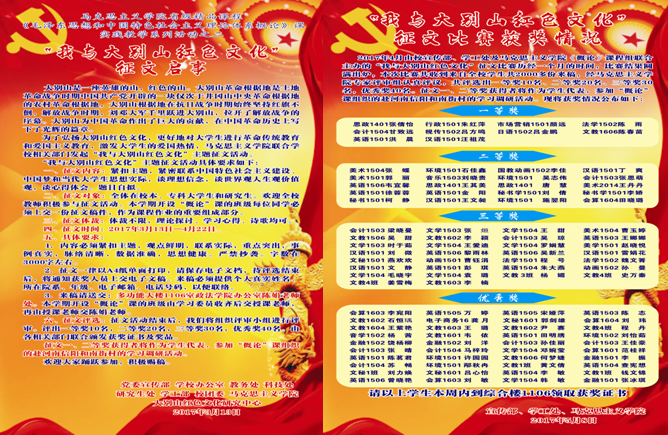 为了弘扬大别山红色文化,更好地对大学生进行革命传统教育和爱国主义教育,激发大学生的爱国热情,bevictor伟德国际1946联合学校相关部门发起“我与大别山红色文化”主题征文活动。征文活动由bevictor伟德国际1946“毛泽东思想和中国特色社会主义理论体系概论”课程组承办。征文活动历时一个多月,得到了全校师生的大力支持,活动共收到征文稿件2481篇。5月12日,bevictor伟德国际1946组织专家对征文进行了评选。共评出一等奖10名,二等奖20名,三等奖30名,优秀奖40名。