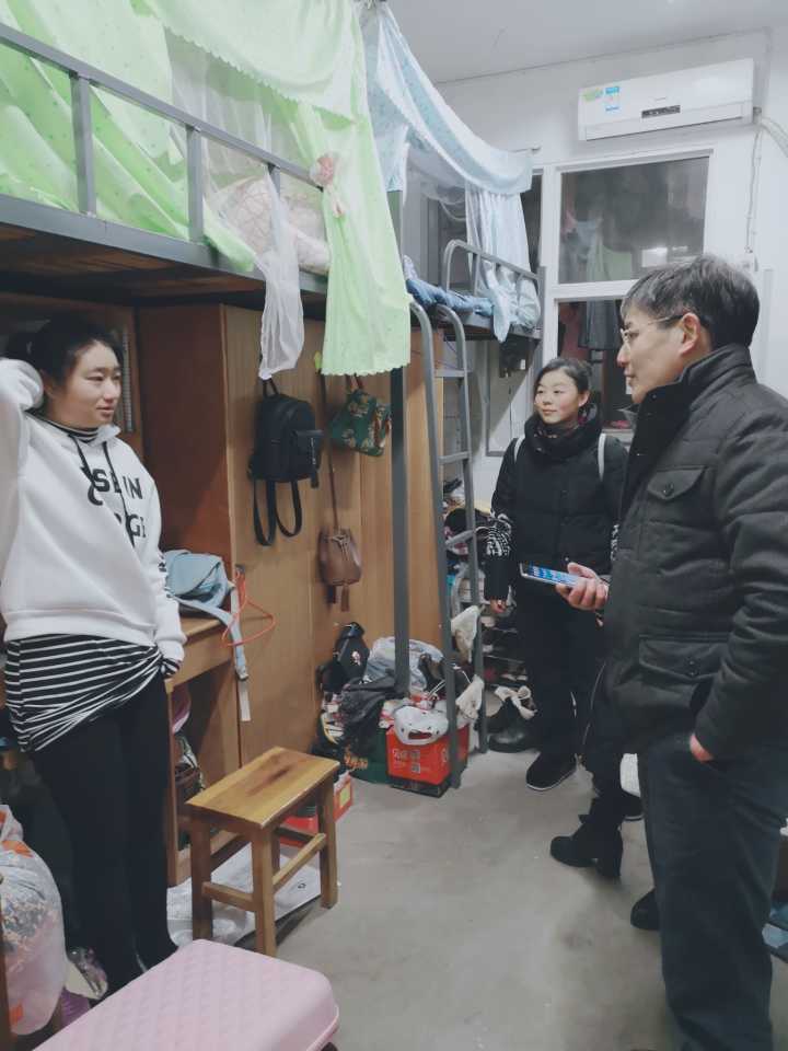 2月23日晚上6点半,为深入了解学生到校情况,强调开学安全问题,我院党总支书记汪季石、院长周青鹏、党总支副书记席桢、副院长黄树光以及全体班主任老师深入学生宿舍,看望了刚刚收假的学生们。
