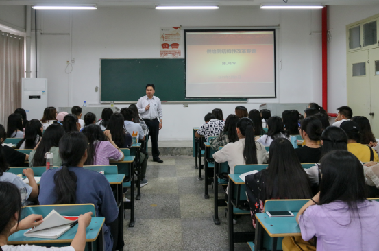 陈向军的报告运用了大量的专业理论、专业术语和专业图式,聚焦供给侧结构性改革系统回答了是什么、为什么、做什么、怎么做,用典型事例和权威数据说话,不拘泥于知识传授,重视方法论的启迪,显示出极强的理论功底、鲜明的问题导向、宽广的理论视野和极为灵敏的思维嗅觉。听了陈向军校长的报告后,学生们纷纷表示受益匪浅。