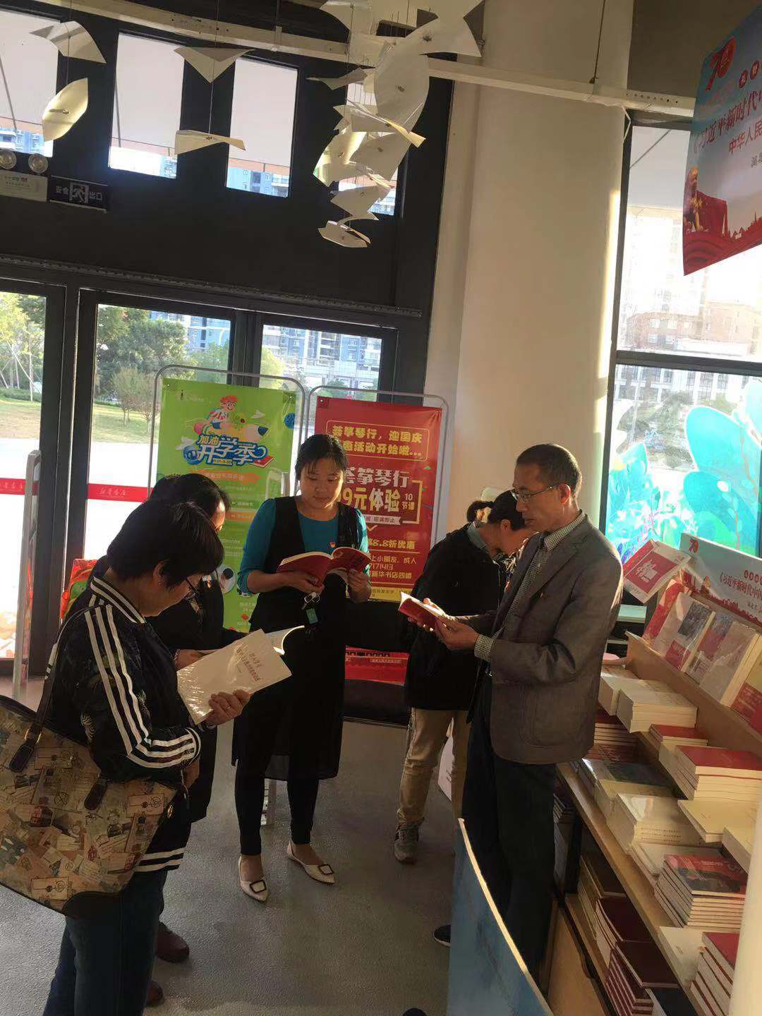 第三环节是实践活动。理论学习结束后,思修形策党支部全体党员教师赴黄冈市新华书店遗爱湖书城参阅“不忘初心、牢记使命”主题教育相关书籍,继续补充精神食粮同时,提升马克思主义理论水平和专业技能,做到真读书、爱读书,营造更加良好的文化氛围,进一步制订了党支部的户外活动计划。