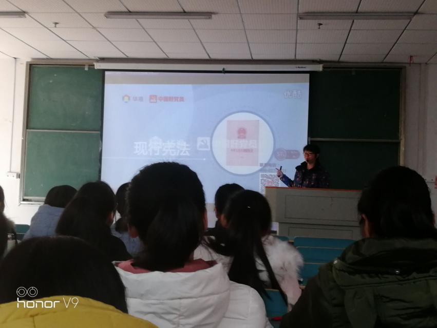 蔡潇老师在授课班级进行国家宪法日视频播放