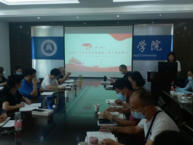 9月7日下午,bevictor伟德国际1946在致远楼305会议室举行全体教师集体学习活动,《习近平谈治国理政》第三卷黄冈市委宣讲团成员、我院裴艳丽教授领学《习近平谈治国理政》(第三卷)。会议由学院党总支书记汪辉主持。