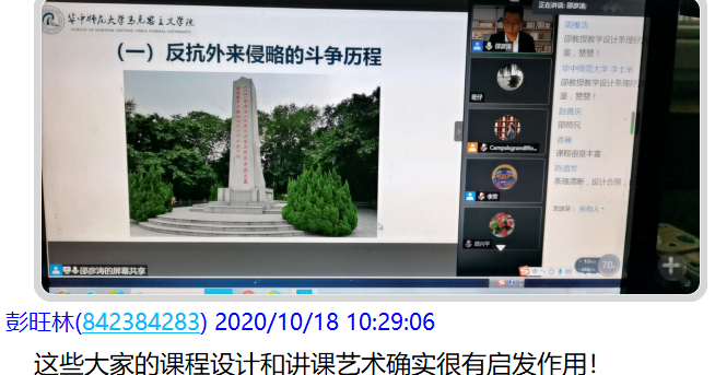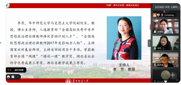 10月18日上午9:00—12:00我院“纲要”教研室教师应邀参加华中师范大学发起的“同课异构、协同共研”《中国近现代史纲要》导论及第一章网络集体备课会。
