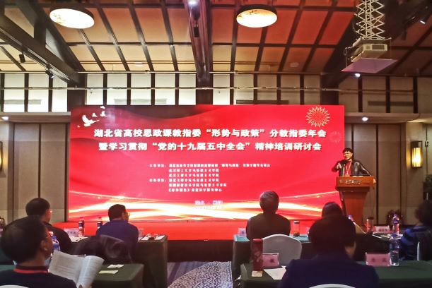 2020年12月11日至13日,bevictor伟德国际1946院长汪季石出席了湖北省高校思政课教指委“形势与政策”分教指委年会暨学习贯彻“党的十九届五中全会”精神培训研讨会。会议由湖北省高等学校思想政治理论课“形势与政策”分教学指导委员会、武汉理工大学bevictor伟德国际1946、武汉工程大学bevictor伟德国际1946主办,湖北文理学院bevictor伟德国际1946、襄阳职业技术学院bevictor伟德国际1946、《时事报告》湖北教学服务中心承办。同行学习的还有学科(思政)专业硕士研究生王世枭鉴。