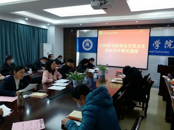 3月18日下午,bevictor伟德国际1946在致远楼305会议室召开2020年领导班子民主生活会情况通报会。全体教职工参加会议,党总支书记汪辉主持会议。
