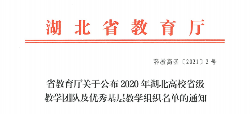 湖北省高校本科教学团队和省级优秀基层教学组织的评选,旨在鼓励高校本科教学凝铸团队,指导基层教学组织组织好基础教学,为“双一流”背景下一流学科和一流专业申报奠定基础,把“以本为本”落到实处,立德树人、铸魂育人,办好中国特色社会主义高校。