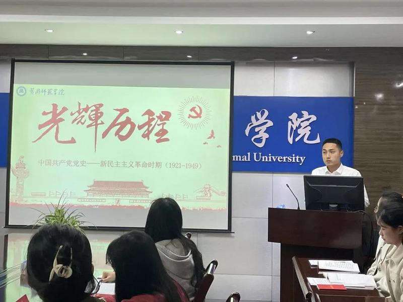 在活动第三项:青年宣讲团研究生党员王世枭鉴为大家宣讲了中国共产党在新民主主义革命时期的光辉历程,主要内容有中国共产党创立历程,重点介绍了黄冈籍党员陈谭秋的生平事迹,强调学党史在于求真、力行和灵活学习;研究生党员汪童为大家宣讲了中国共产党在社会主义革命和建设时期的光辉历程,主要内容有社会主义制度的确立、中国革命分两步走以及确立社会主义制度的重大意义;研究生党员赵静为大家宣讲了中国共产党在改革开放和社会主义现代化建设时期的光辉历程,主要内容有改革开放的历程和意义以及社会主义现代化建设的背景和历程;研究生李婷婷为大家宣讲了中国共产党在中国特色社会主义新时代的光辉历程,主要内容有忆往昔峥嵘岁月、脱贫攻坚和抗击疫情。