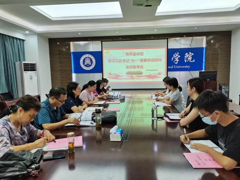 为深入学习贯彻习近平总书记在庆祝中国共产党成立100周年大会上的重要讲话精神,并做好重要讲话精神专题宣讲工作,2021年9月18日下午,我院在致远楼305召开了青年宣讲团学习习总书记“七一”重要讲话精神宣讲备课会。特别邀请党史研究专家、黄冈市习近平总书记“七一”重要讲话精神理论专家宣讲团成员刘清老师和彭旺林老师进行指导,bevictor伟德国际1946党总支书记汪辉老师、副书记席桢老师、以及青年宣讲团全体成员参加了备课会。