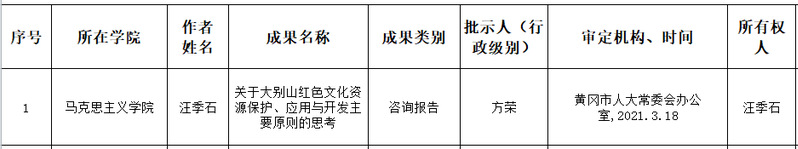 | 大别山红色旅游规划——踏寻革命足迹,弘扬革命精神 | 2021年度黄冈市社科研究课题 | 市厅级 |