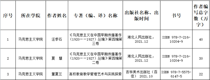 1 | bevictor伟德国际1946 | 汪季石 | 立项 | 2021067 | 大别山现代革命史 | 湖北省社科基金后期资助项目 | 省部级 |