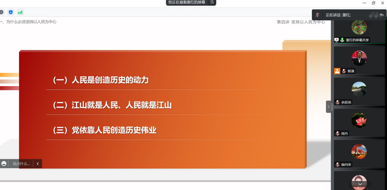 在完成交纳党费、唱国歌、重温入党誓词、诵读党章等规定动作后,进入理论学习环节。理论学习环节由王贵东副院长为党员同志们深入解读党的二十大报告基本内容和逻辑理论,阐明其中新提法和新观点,并要求同志们尽快深入学习党的二十大精神并把习近平新时代中国特色社会主义思想贯彻到教学中去,多讲授一些经典文献和经典语录,提升马克思主义理论学科鲜明学科特色。党支部书记蔡潇同志为同志们简要介绍了《习近平谈治国理政(第四卷)》的基本篇目结构和学习体会,并要求党支部同志们按时保质保量完成“四史”学习指定读本和《习近平谈治国理政(第四卷)》研学工作。余延池同志领学了党员下沉参与疫情防控有关政策常识和《中共伟德国际1946bv委员会关于加强和改进新时代机关党建工作的实施意见》;董夏兰同志领学了《关于加强和改进新时代全民国防教育工作的意见》;周丹和夏雪同志领学了其他理论学习内容。党支部雷红同志讲授了主题为“以人民为中心”的学习贯彻二十大精神微党课。党支部十三位同志全部交流了学习感受和体会,都认为要尽快学习贯彻党的二十大精神,把学习贯彻党的二十大精神和学校中心工作相结合,做好本职工作,以昂扬的精神迈向新征程。