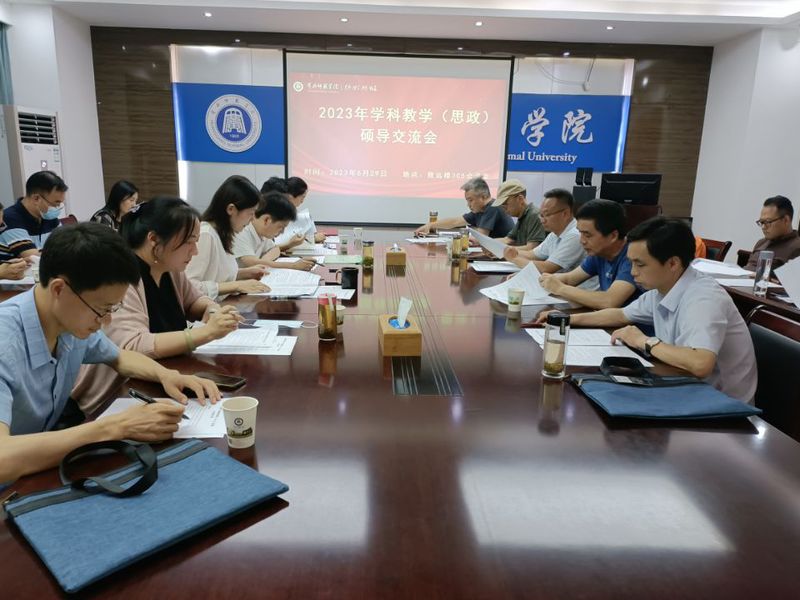 为适应新形势下研究生教育改革的需求,完善人才培养方案,6月29日下午,我院2023年学科教学(思政)硕导交流会在致远楼305会议室举行。行业导师黄冈思源实验学校副校长陈壁老师、徐伶俐老师,黄州区一中王善新老师,黄州中学袁年兵老师,黄冈中学卫东老师以及学科教学(思政)领域全体校内硕导参加了交流活动,交流会由副院长夏慧主持。