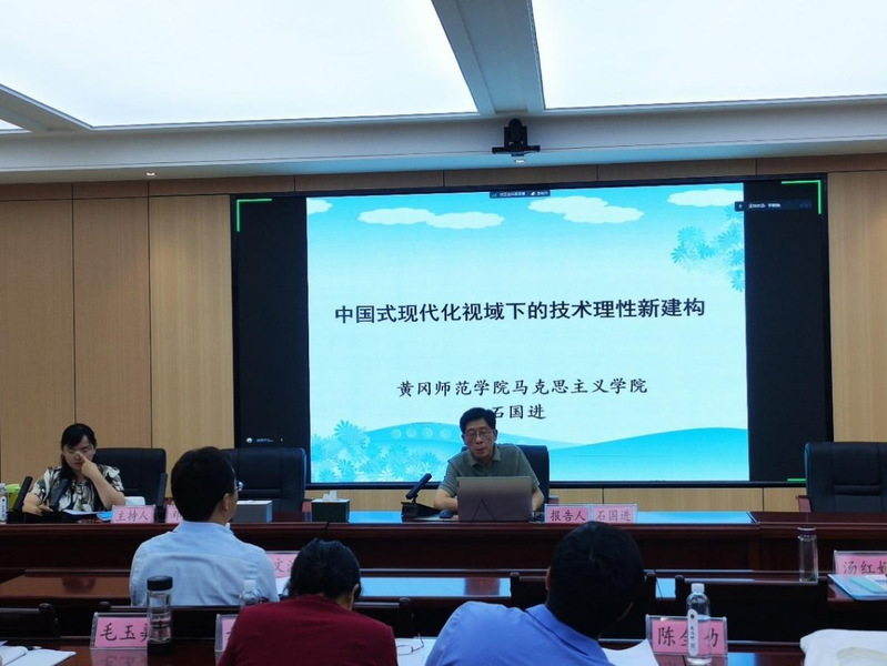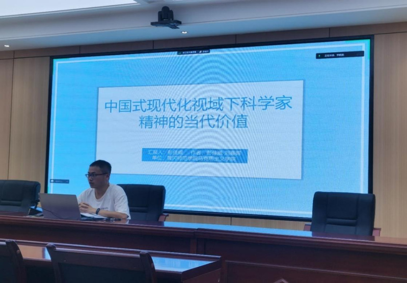 本次会议围绕中国式现代化的创新特质与新时代的英雄品格、中国马克思主义科技观的理论逻辑与中国式现代化科技强国的实践逻辑、乡村产业带头人与新型集体经济的互动培育等主题开展研讨。石国进在大会上做了《中国式现代化视域下技术理性新构建》的专题报告,阐述了技术理性研究的缘起和技术理性的历史时空、现代困境,并结合技术理性嬗变及其趋势具体谈论了在中国式现代化视域下的技术理性新构建,提出了中国式现代化视域下技术理性新构建具有更加深厚的人文情怀,与全球治理时代的中国理念和方案高度一致。报告引发了与会专家学者的广泛思考和交流。彭佳威、刘熹晖在研究生论坛上做了《中国式现代化视域下科学家精神的当代价值》的交流,与会专家给予了鼓励和建议。