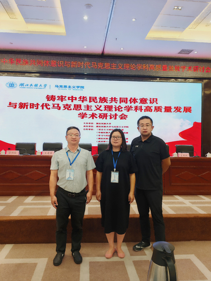 2024年7月6日“铸牢中华民族共同体意识与新时代马克思主义理论学科高质量发展”学术研讨会在湖北民族大学举办。来自中国社会科学院、四川大学、山东大学、华中师范大学、武汉理工大学、中南民族大学、西南民族大学、上海社会科学院、内蒙古大学等全国50余所高校、科研机构和学术期刊的专家学者200余人参加此次会议。我院党委书记、黄冈市铸牢中华民族共同体意识研究中心主任汪辉、中心副主任陈永典老师、中心办公室主任王龙老师等3人受邀参加会议。