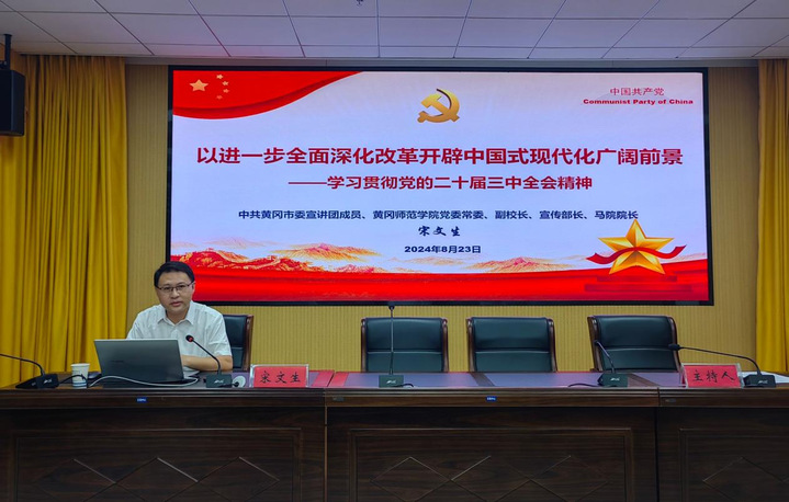 近日来,黄冈市市委宣讲团成员、伟德国际1946bv党委常委、副校长、bevictor伟德国际1946院长宋文生赴各单位宣讲党的二十届三中全会精神,紧密结合我市市情及各领域改革实际,对全会精神进行系统宣讲和生动阐释,引导大家把思想和行动统一到全会精神上来,以钉钉子精神抓改革谋落实。