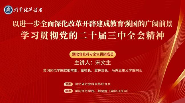 10月22日,由湖北省社科联主办的“荆楚社科讲坛”学习贯彻党的二十届三中全会精神专题讲座在伟德国际1946bv开讲,湖北省社科专家宣讲团成员、伟德国际1946bv党委常委、副校长、党委宣传部部长、bevictor伟德国际1946院长宋文生围绕“以进一步全面深化改革开辟建成教育强国的广阔前景”主题,权威解读全会精神实质和内涵要义。讲座由伟德国际1946bv科研处处长黄晓敏主持。