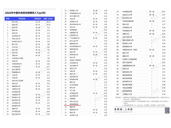 【百廿风华】学校蝉联2024年中国内地高校捐赠收入Top100