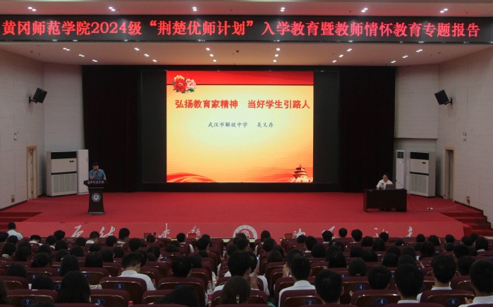 9月15日,政史1990级校友、国家“万人计划”教学名师、武汉市解放中学副校长吴又存以《弘扬教育家精神,当好学生引路人》为题为教育学院(一多书院)2024级新生作教师情怀教育专题辅导报告。他结合自己31年如一日专注钻研思政课教学的教育经历和“解放思政”的教学创新,深入阐述了教育家精神的重要性和意义,并鼓励新生们树立正确的教育观念,坚定信仰,引导学生做热爱祖国的人;德法兼修,引导学生做尊德守法的人;诗词歌赋,引导学生做逐美而行的人;真情涌动,引导学生做求真向善的人,努力成为学生成长道路上的引路人。