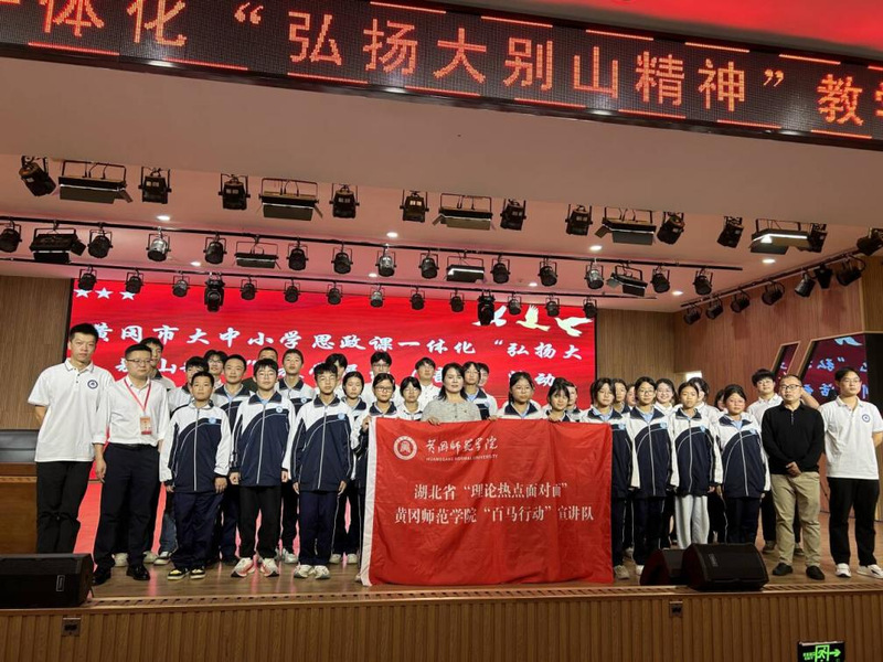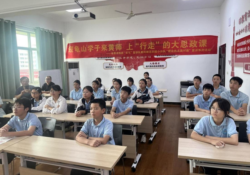 9月26日,省委讲师团“百马”宣讲队我院小分队为结对实践点麻城市龟山镇开展“理论热点面对面”2025年系列宣讲第二场活动。本次活动以“迎龟山学子来黄师,上‘行走’的大思政课”为主题,通过课堂观摩学习、实地参观体验、座谈培训交流等形式为麻城市龟山镇中学生代表带来一场富有创意的大思政课。