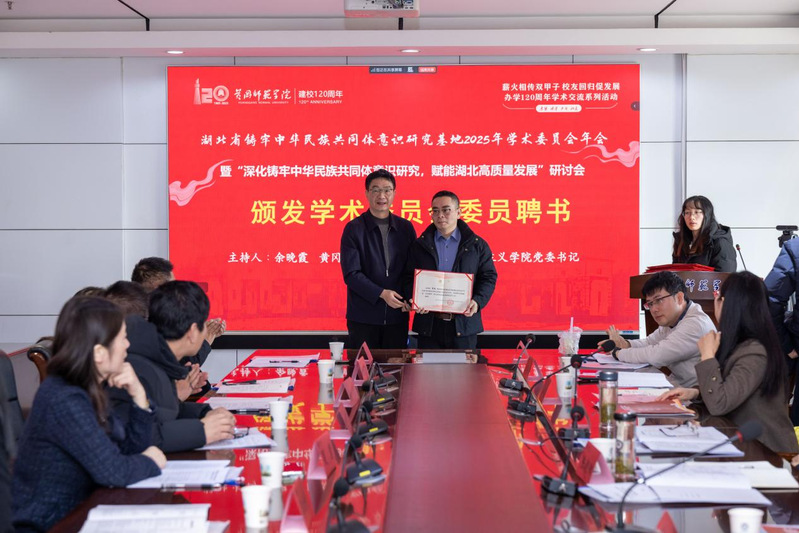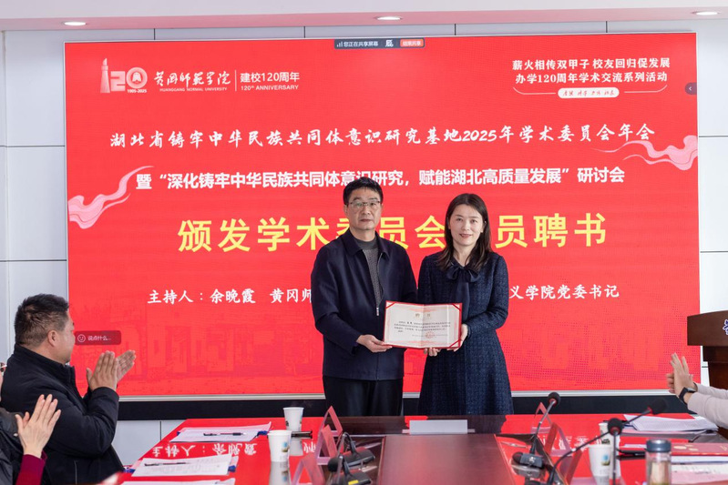 12月27日,由我院和学校湖北省铸牢中华民族共同体意识研究基地承办的2025年学术委员会年会暨“深化铸牢中华民族共同体意识研究,赋能湖北高质量发展”专题研讨会成功召开。校党委副书记陈朝阳,党委常委、bevictor伟德国际1946党委书记余晚霞,黄冈市委统战部副部长张以标出席会议。余晚霞主持开幕式。